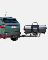 Thule Santu is a hitch-mounted box that fits Thule EasyFold 3, Thule EasyFold XT and Thule Epos bike carriers, allowing you to transport bikes, luggage or both (only with Thule Epos) in the rear of your vehicle.
